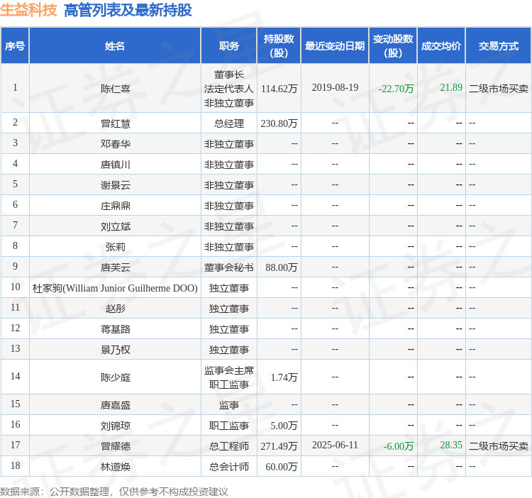 生益科技的高管列表及最新持股情况如下:股票配资app下载